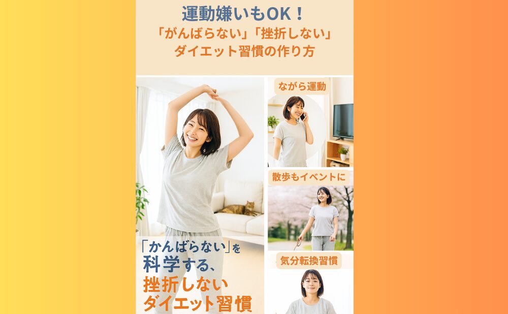 今回は、運動嫌いなあなたでも無理なく続けられて、リバウンドの心配も少ない「がんばらないダイエット」習慣の作り方について、科学的な視点も交えながらお話しします。